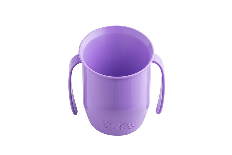 THE DOIDY CUP is the uniquely slanted open cup training to help infants during weaning. The two-handled Doidy Cup, has been scientifically designed with a unique slant in order to teach infants to drink from a rim, NOT a spout or teated bottle. The sloping design allows a more natural upward and downward motion of the hands and arms, it teaches infants to drink from an open cup and how to put it down correctly.