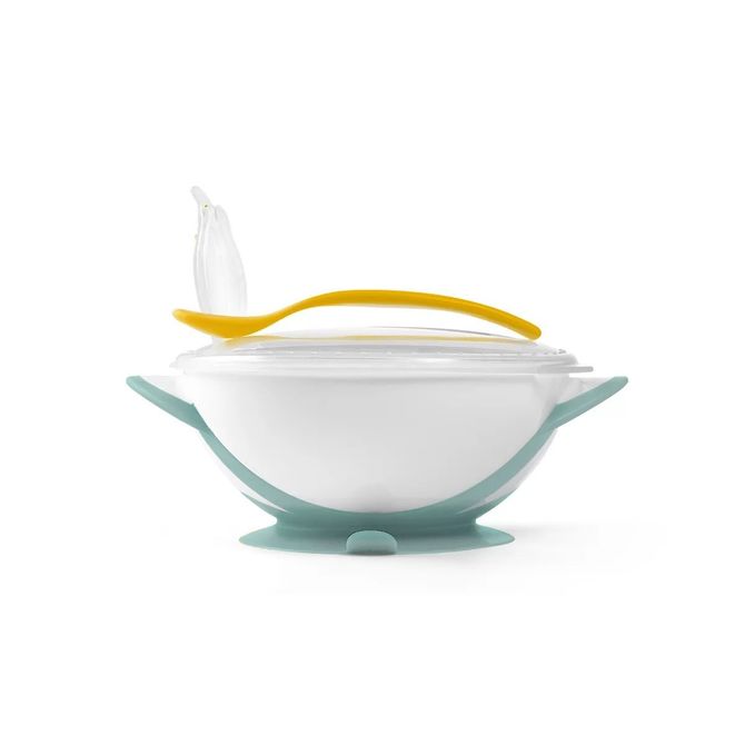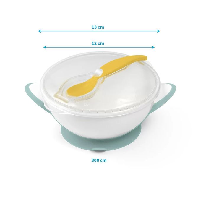 The rubber suction cup prevents the cup from sliding over the table. Made of safe materials intended for contact with food, the product is completely free of Bisphenol A. It can be used in a microwave oven and dishwasher safe.