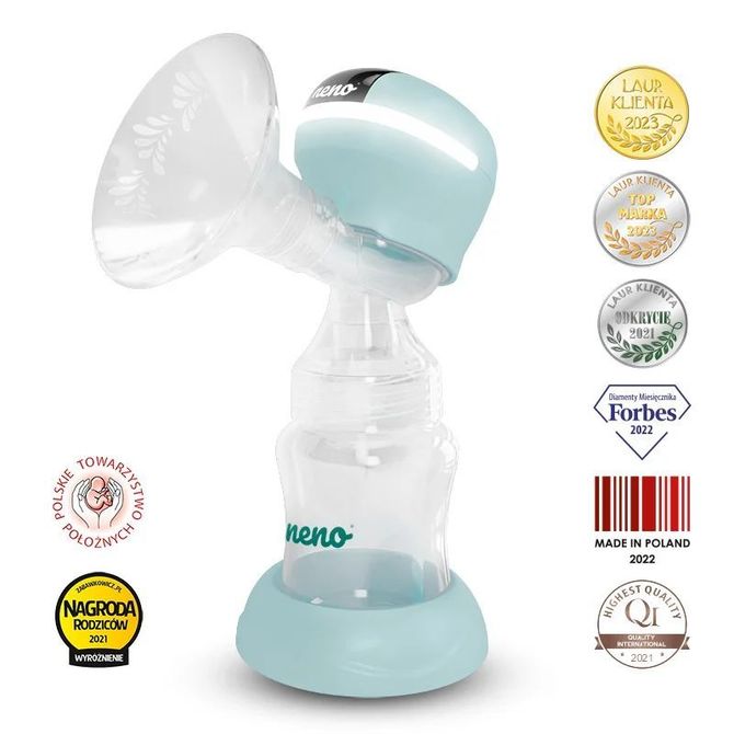 Neno Angelo is our first single breast pump with 3 phases that perfectly reproduce the baby’s natural sucking rhythm. In each mode, there are 9 levels of suction power to choose from, which allows you to personalize the settings according to your needs. After the cycle ends, the breast pump turns off automatically. The entire cycle lasts 30 minutes.