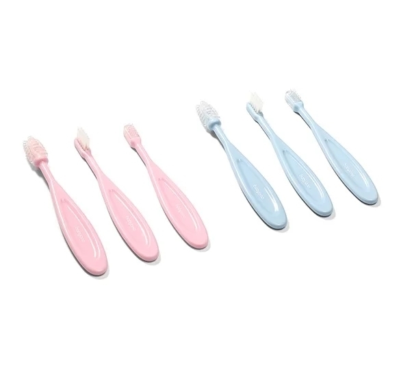 A set of delicate toothbrushes is irreplaceable in the daily oral hygiene of a child. The set includes 3 brushes: the first, silicone one, is intended for gum massage for children who do not have their teeth yet; the second – silicone one is designed for washing small teeth; the third – with soft bristles, intended for older children. Brushes are perfect for learning how to brush your teeth yourself.