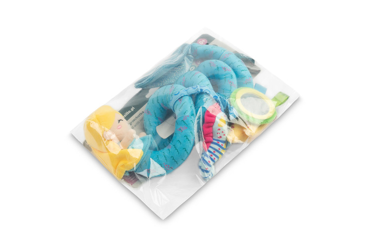 The spring is equipped with hanging sensory toys, such as rattles and teethers, that develop your child’s senses. Various material textures stimulate touch while vivid colours attract the child’s attention, supporting their visual and motor development.