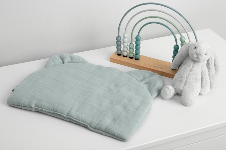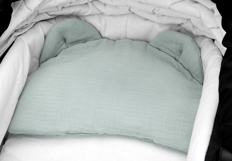 The pillow will ensure a good night’s sleep at home or during the trip. It is perfect for a stroller, a cot, or as a pillow to support the baby’s head. It is made of delicate muslin, and the filling is made of antiallergic silicone non-woven fabric. These materials will not irritate the baby’s delicate skin. The pillow is flat, perfect even for newborns.