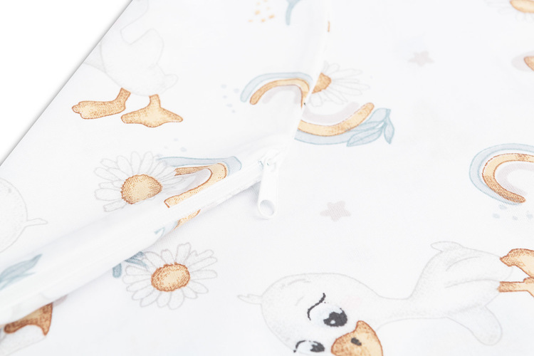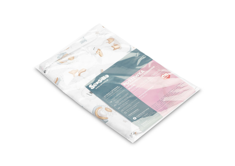 The pillowcase fits a feeding pillow in the size of approx. 60x40x11cm. It is fastened with a zipper, so it can be easily removed and washed. Made of 100% certified nice-to-touch cotton. It has patterns and colors that will suit a child’s room. Made in Poland.