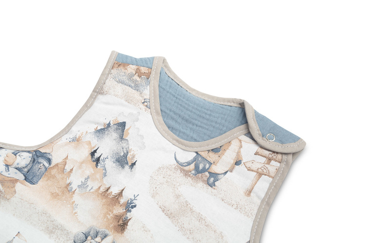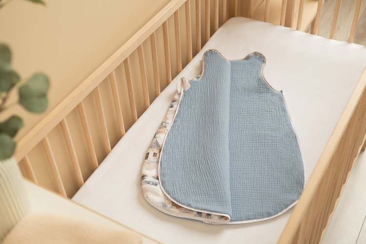The sleeping bag will serve children from the first days of life (0-9 months), providing them with warmth and safety. It is sewn from soft cotton filled with padding. The inside and back of the sleeping bag are made of muslin cotton. The product does not contain hard elements that could irritate the child’s skin. It is equipped with a two-sided zipper, led around the sleeping bag, allowing you to change the diaper without taking the child out of the sleeping bag.