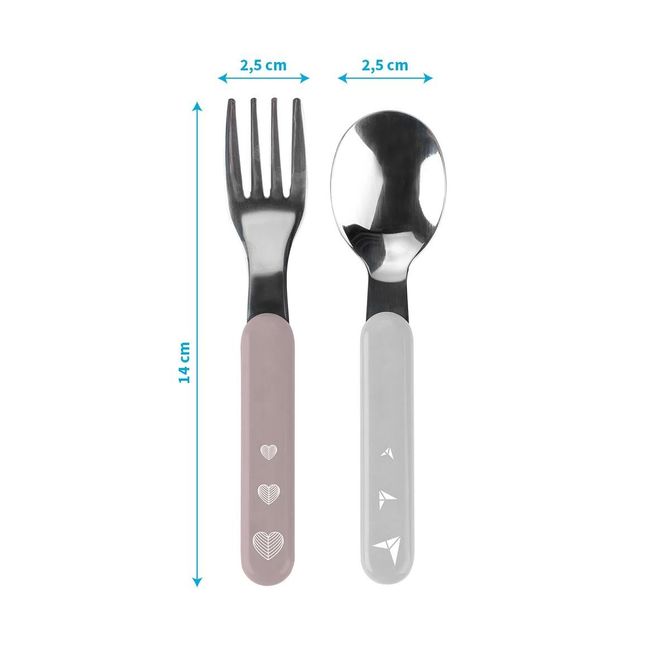 A stainless steel cutlery set is very useful when your baby learns how to eat independently. The size has been adapted to the small hands of a child.