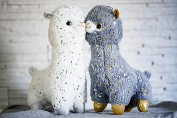 Soft and pleasant to the touch. The mascot can be an interesting decoration as well as a favorite cuddly toy. Available in two colors: white and gray covered with shiny elements. It has a soft filling. The mascot height is 30 cm.