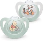 Isn’t it great when you can always rely on something? The NUK Star pacifier provides exactly this reliability. 99% of children can calm down. 96% of breastfeeding mothers confirm that it can also be used when the child is breastfed. Over 90% of orthodontists recommend it because of its shape suitable for the jaws. Unfortunately, children cannot explain why they like NUK Star so much. We suspect that the pleasant feeling in the mouth contributes to this: the very soft soft zone on top gently adapts to the palate, while the underside of the NUK Star leaves room for the natural sucking movements of the tongue. And because the pacifier is very narrow and flat, it puts almost no pressure on the teeth or jaw. With NUK Star Night pacifiers, babies will quickly find their way to the land of dreams. Thanks to the luminous material that is harmless to children, the pacifiers glow in the dark with a gentle light, making them quick and easy to find even at night.