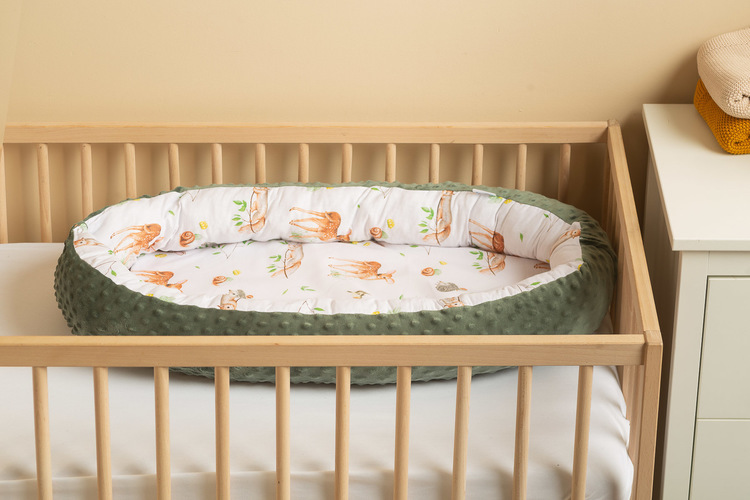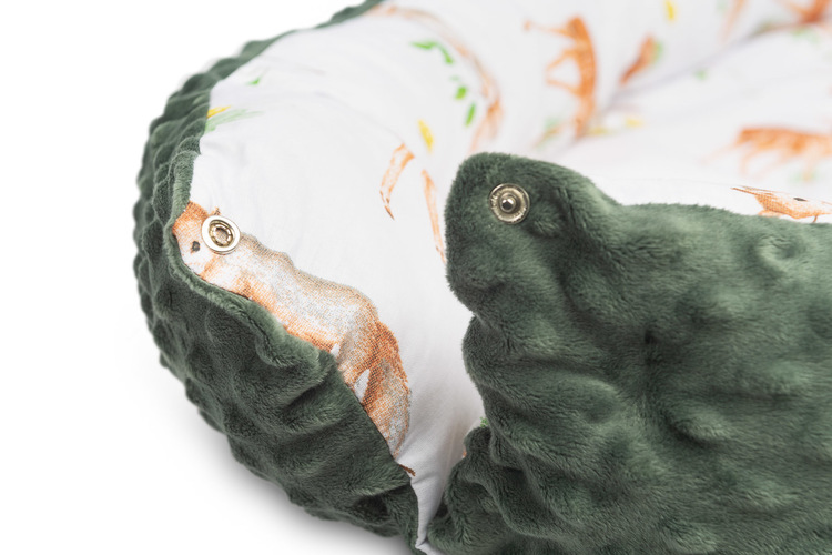 The Sensillo baby nest is designed for infants from birth up to 6 months. It is equipped with practical snap-buttons for easy binding of the sides. The middle surface consists of a removable mattres made of PU foam. The outer cover is made of delicate 100% cotton fabric on the inside and soft Minky fabric on the outer parts of the nest. A travel bag is included for easy transportation.