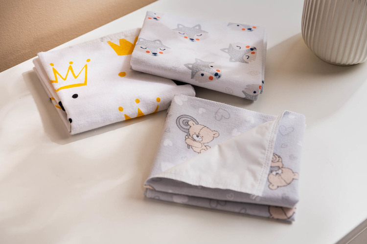 Reusable oilcloths, perfect for changing. Used as a base, they protect against dirt. Made of high quality flannel. They are lined with a delicate, waterproof, breathable oilcloth. 3 pcs in a packet