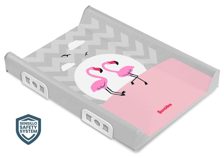 Stiffened Changing Pad with Safety System– FLAMINGOS GREY 70 cm