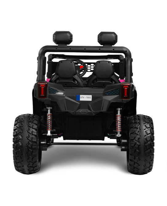 Blaze is a battery-powered off-road vehicle that will provide great fun for two children. Driving safety is ensured by a comfortable eco-leather seat, equipped with 2 sets of 3-point belts. The vehicle’s suspension has been enriched with 4 shock absorbers that will help you traverse uneven terrain, which, combined with wheels made of EVA foam, guarantees extraordinary driving comfort. Blaze is equipped with LED lights located at the front of the vehicle and on the beam above the passengers’ heads. Realism during play will be added by elements such as an opening door with a handle, a lifting hood and an open trunk at the back of the vehicle. Blaze is powered by 4 45W motors powered by one 12V10Ah battery. Parents of smaller children can remotely control the vehicle using the included wireless controller. Playing with Blaze will be made more enjoyable by a multimedia panel with USB.