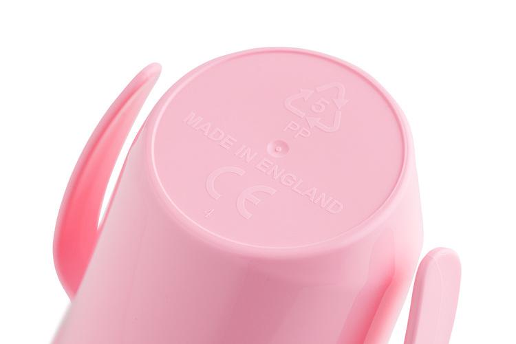 THE DOIDY CUP is tried & trusted in baby weaning and open cup training. For nearly 70 years since its development in 1950 Doidy Cup’s unique design helps children see the level of the liquid contents and teaches them early hand to eye co-ordination. The twohandled Doidy Cup, has been scientifically designed with a unique slant in order to teach infants to drink from an open cup, rather than from a spout or a teated bottle. Health Professionals, the Government* and leading health organizations such as The British Dietetic Association* are active in recommending the introduction of an open cup at around 6 months of age and completely stopping the use of a bottle by 12 months. As well as teaching valuable skills there are a number of critical health benefits associated with open cups compared to other drinking vessels. BY DESIGN – young infants (from around 3 months) find the two handled Doidy Cup easy to drink from because: