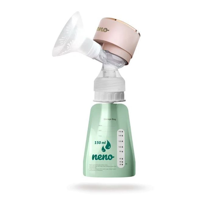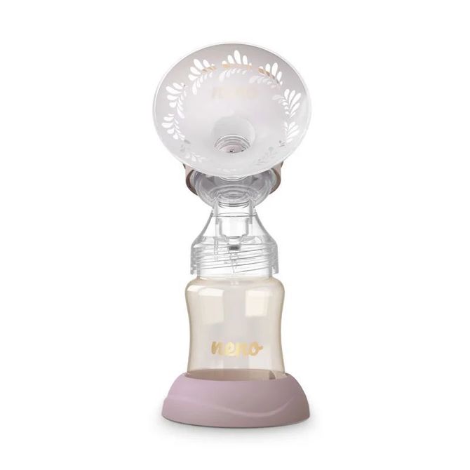 This is a single, three-phase electronic breast pump by Neno from the premium segment. The device is equipped with an IPX 6 waterproof class, which protects the breast pump against splashes from various directions. You can therefore use the device in the shower or while bathing. Water drops falling on the device and water vapor floating in the room will not have a negative impact on the functionality of the breast pump. The set includes a scratch-resistant bottle with a stand, a nipple and a stopper, a velvet storage bag, two food storage bags with a connector and funnels in the two most universal sizes: SLIM 21 mm and MEDIUM 24 mm.