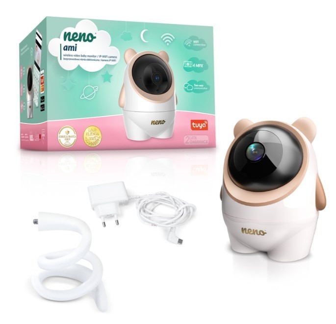 Neno Ami is a modern teddy bear-shaped baby monitor that provides live monitoring, motion and sound detection, and two-way communication. It is equipped with night mode, temperature and humidity sensors, and a mobile application, thanks to which it offers full control over the safety of your child – always and everywhere.