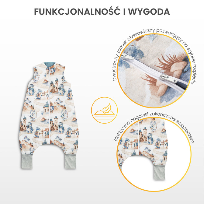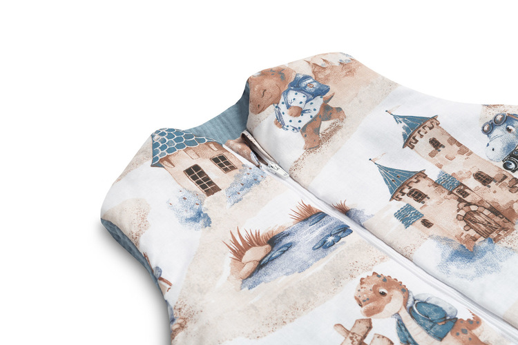 The sleeping bag is made of soft fabric that is friendly to the baby’s skin, ensuring optimal temperature and preventing the baby from overheating while sleeping. Additional stitching around the zipper at the neck protects the baby’s delicate skin during use.