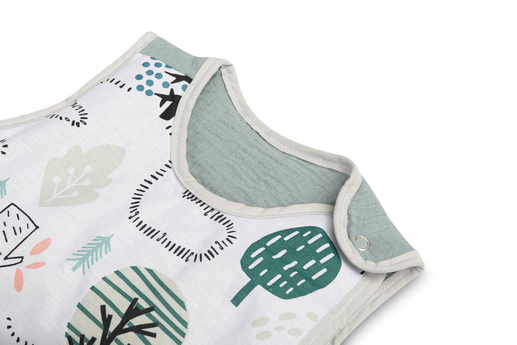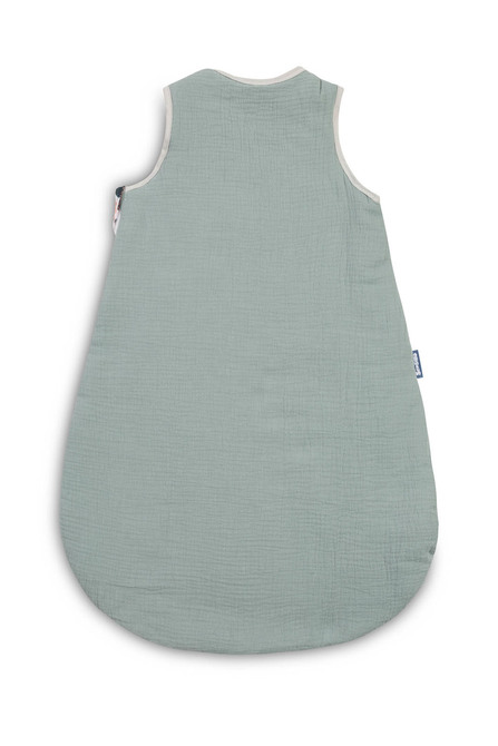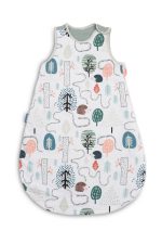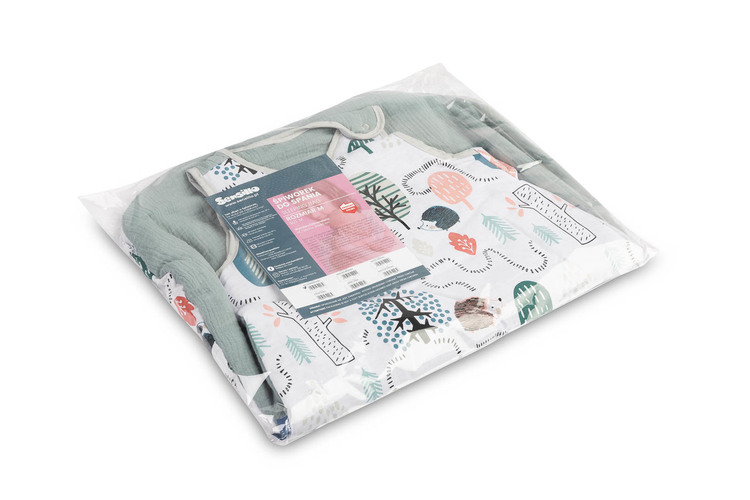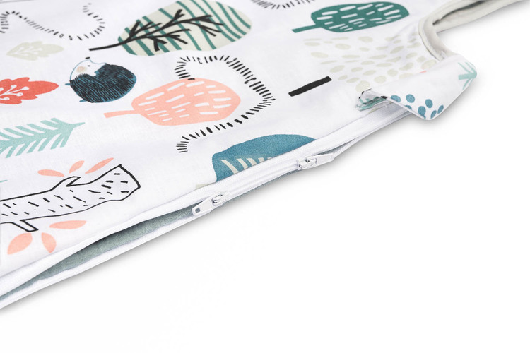 The sleeping bag in size M will serve slightly older children (9-18 months) providing them with warmth and safety. It is sewn from soft cotton filled with padding. The inside and back of the sleeping bag are made of muslin cotton. The product does not contain hard elements that could irritate the child’s skin. It is equipped with a two-sided zipper, led around the sleeping bag, allowing you to change the diaper without taking the child out of the sleeping bag.