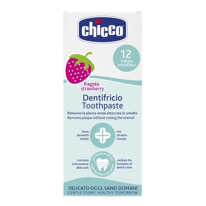 The strawberry flavored paste is recommended for children from 12 months of age. It contains biocalcium – biologically available calcium, which is a mineral that plays a special role in the final stage of teething to strengthen the milk teeth. It does not contain preservatives. Contains xylitol (Xylitol) – birch sugar, which helps to prevent tooth decay. Thanks to its low abrasion, it gently cleans the plaque without affecting the fragile enamel of baby teeth and without irritating the gums. Strawberry flavor encourages older children to take daily oral hygiene. Formula with gel consistency. The paste contains fluoride.
