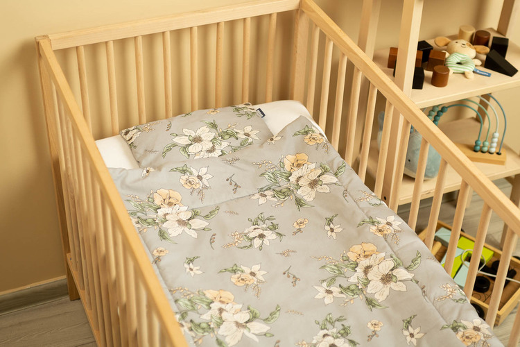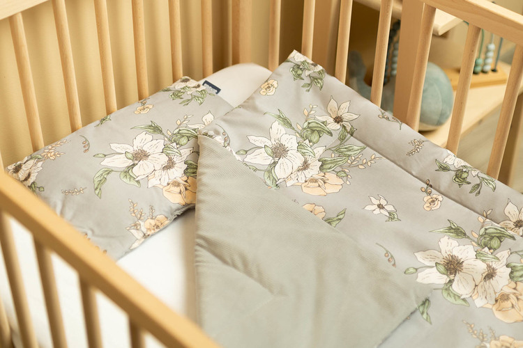 The cot set is made on the one side of high-quality colored cotton and the other of pleasant to touch velvet fabric. It consists of a flat pillow and a duvet with anti-allergic filling. The cuddly fabric will pleasantly wrap every baby.