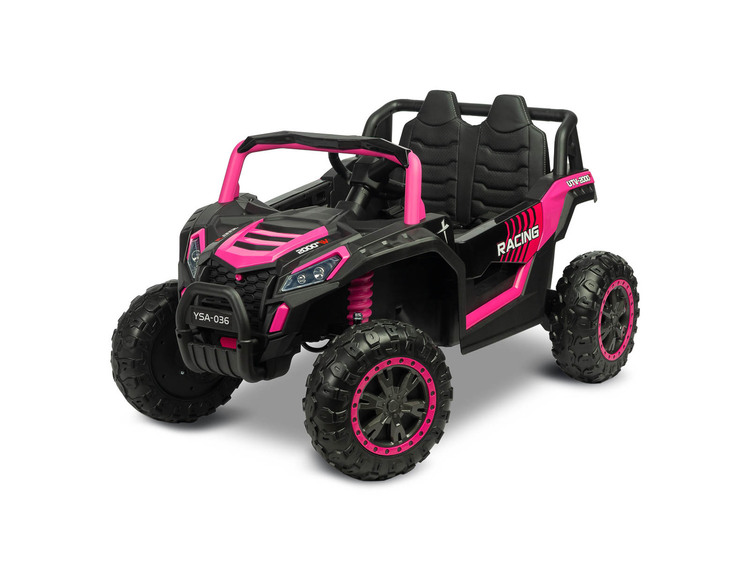 Axel is a unique battery-powered buggy ATV, combining powerful performance with safety and comfort. This off-road vehicle provides incredible driving fun because it has 4-wheel drive. Each is powered by a 45W motor, which makes it perform perfectly on a variety of terrain. Large wheels made of high-quality EVA foam with high clearance guarantee excellent stability and the ability to overcome unevenness. The maximum load of the vehicle is up to 30 kg, which makes it an ideal choice for active children.