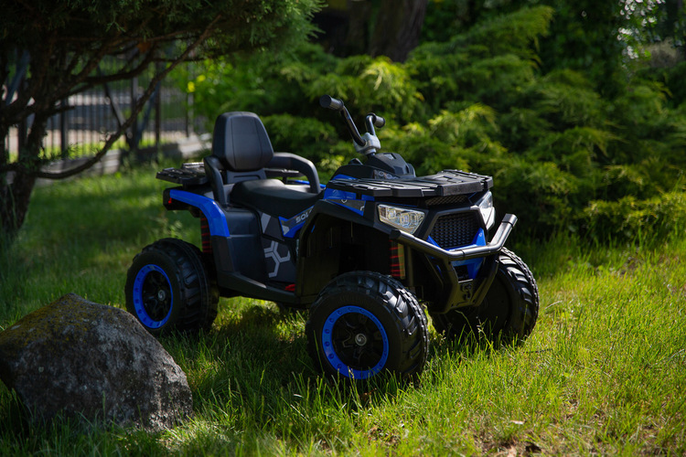Solo is a TOYZ battery vehicle that will undoubtedly awaken your love of ATVs. Large sizes make the child feel as if he is riding a real four-wheeler. 4 powerful 45 W motors and large wheels with rubber cover make Solo easily cope with unevenness and light hills. The vehicle has 2 speeds and a reverse gear. The fun of driving is increased by the multimedia panel with USB and Bluetooth inputs. The dynamic look and effective LED lights make the quad look more attractive. Driving comfort is increased by shock absorbers and a large comfortable seat with backrest. It can also be controlled by the parent via remote control.