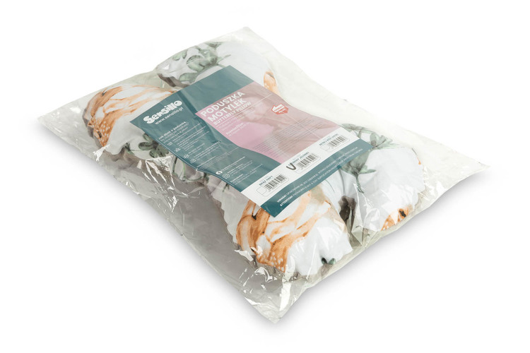 A butterfly pillow provides a comfortable and safe travel for a child. Its special shape adapts to child’s head sitting in a child seat or a pushchair. It gives additional protection of head against impacts. One side is covered with soft minky fabric and the other side with a delicate cotton. The filling of the pillow is anti-allergic silicon lyocell.