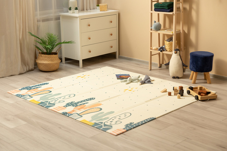 The TOYZ multifunctional mat is the perfect solution for organizing a play corner for children. It has many advantages that give it an advantage over material mats: it does not wrinkle or roll up, it is very difficult to move and it is easy to keep it clean. Its dimensions of 200 x 180 cm provide plenty of space for playing or learning to walk. Because it is made of thick XPE foam, it will ensure a soft landing in the event of a fall, and it will also insulate against the cold. The double-sided design allows you to change the theme, diversifying the fun. The mat has a bag that makes it easy to store and transport.