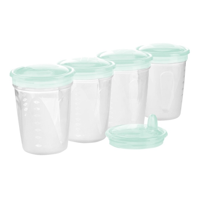 Containers for breast milk, juices and other foods are intended for repeated storage and freezing of food. An additional lid with a mouthpiece enables direct feeding to the baby. Before the first and after each use, the product should be thoroughly washed and scalded with boiling water.