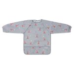 A long-sleeved bib is a practical apron that will protect your child’s clothes. While eating, it will protect not only the front of the clothes, but also the sleeves, which “like” to get dirty. Thanks to the elastic bands, it will fit well even to small children’s hands. The bib with sleeves also has a practical pocket for crumbs, into which leftovers of the meal fall. The apron with sleeves is waterproof and easy to keep clean, so it will be useful when learning to eat independently. You can adjust the clasp of the bib and easily adjust it to the circumference of the toddler’s neck.