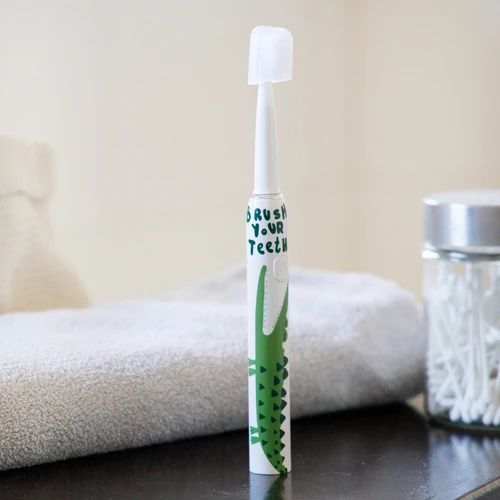 The low battery LED indicator on the front of the toothbrush will inform you about the upcoming need to charge the toothbrush. The toothbrushes available in three graphics with a green crocodile, yellow giraffe or black panda will become a friend to every little brat.