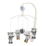 Baby Mix’s carousel over the crib with plush toys helps develop baby’s eye-hand coordination and calms baby before falling asleep. When activated, it plays melodies and the toys rotate. Designed for babies who are not yet moving. The color of the toys varies depending on the current offer. Height of the toys 12 cm.
