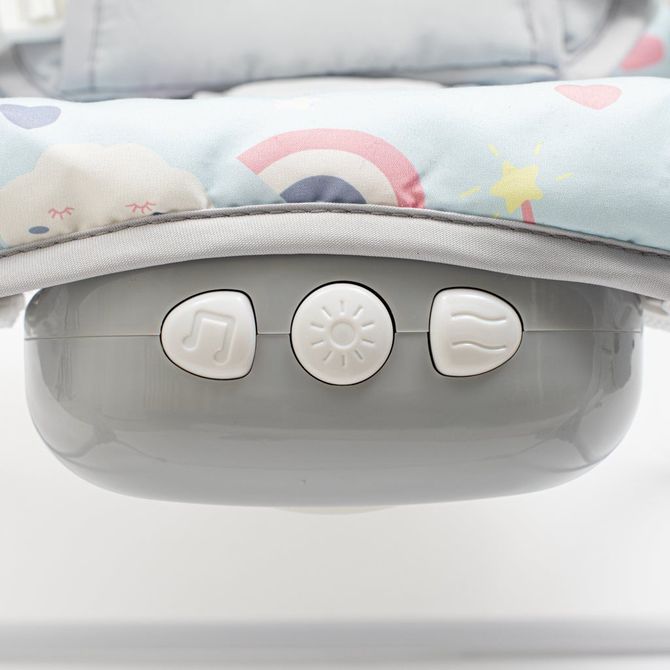 Baby Mix recliner will serve your baby from birth until he or she reaches a weight of 18 kg. It can be used as a recliner, a rocking chair and a highchair for older children. It is made of the highest quality materials, with attention to detail. It is equipped with a detachable headband with toys, an adjustable backrest and a vibration and sound module to make the toddler’s time more pleasant.