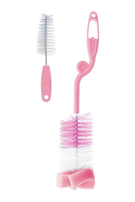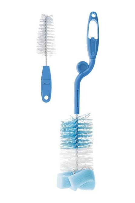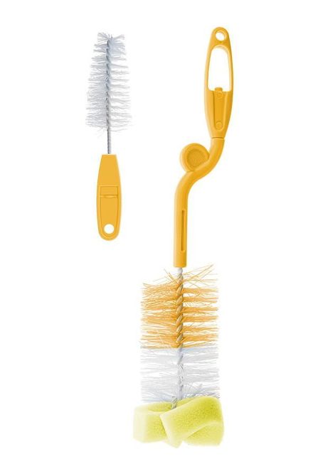 The set consists of two brushes, a larger brush for washing bottles and a smaller one for washing pacifiers.