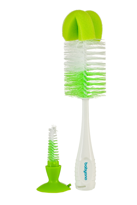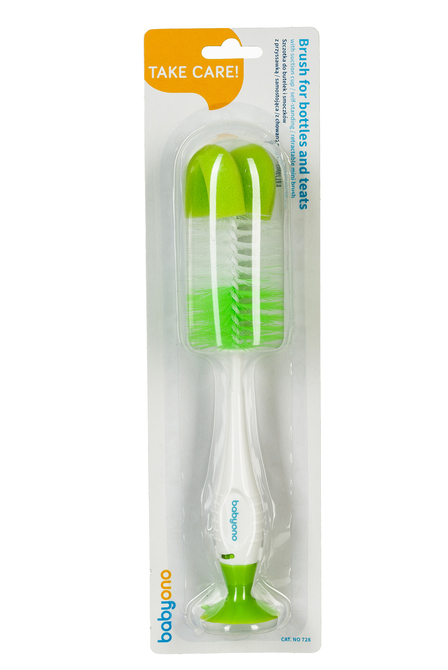 The “SELF-STANDING” suction brush helps to thoroughly clean both the bottle and the nipple. The brush has a suction cup that allows it to be attached to flat surfaces for easy drying. The bottle brush is finished with a soft sponge that adapts to the shape of the bottle. the handle is hidden small brush for cleaning the nipple Soft bristles and sponge reach hard to reach places The brushes are made of durable and safe materials, do not contain Bisphenol A.