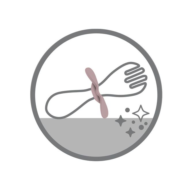 The wide, rounded handle fits perfectly in the baby’s hand, thanks to which it is easier for the child to learn to eat with cutlery.
