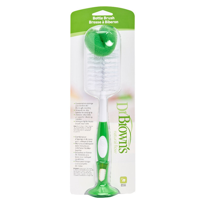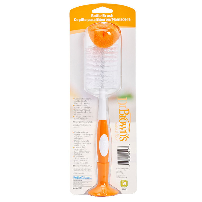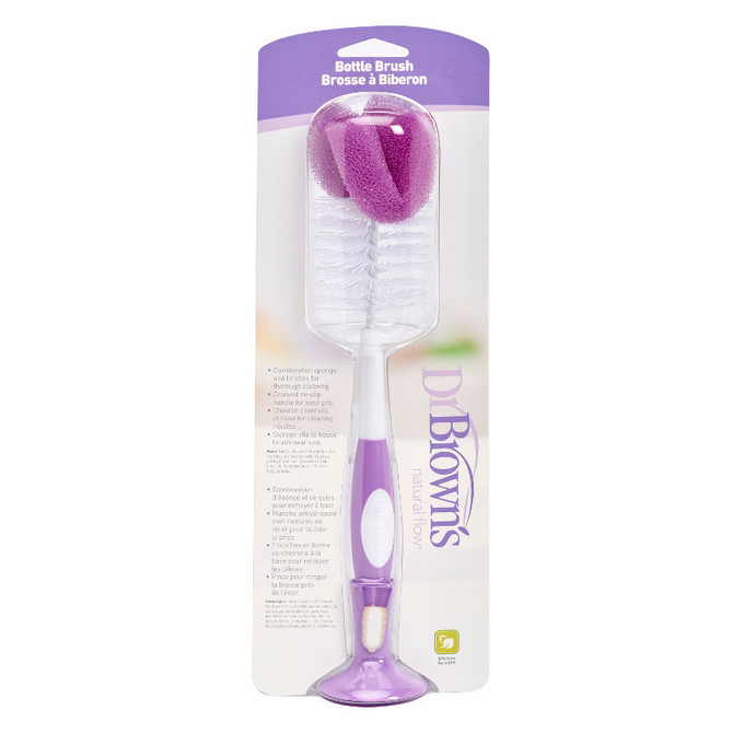 Dr Brown’s brush for bottles and teats helps to clean them thoroughly. It was designed for all Dr. Brown’s bottles. Thanks to it, you can effectively remove all dirt. A properly profiled tip reaches places that are hard to reach, and the comfortable non-slip handle ensures a stable grip. It has a combination of bristles and sponges and a ribbed tip for cleaning teats. The brush comes with a suction cup to conveniently store it in an upright position. Made of durable and safe materials that do not contain Bisphenol A. Can be washed in the dishwasher on the top shelf. It comes in blue, pink, orange, green and purple.