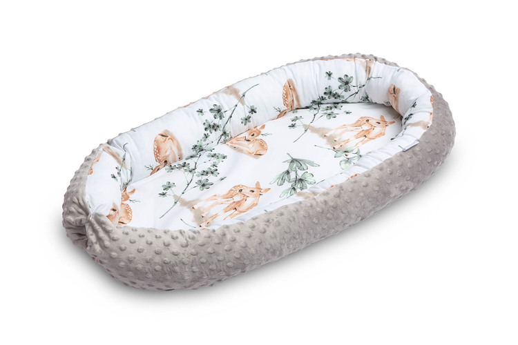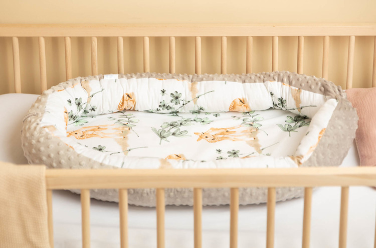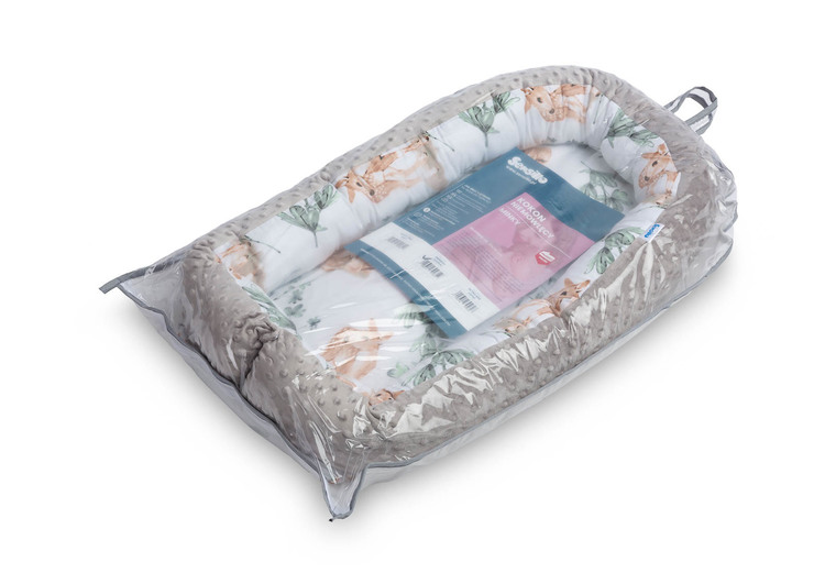 The Sensillo baby nest is designed for infants from birth up to 6 months. It is equipped with practical snap-buttons for easy binding of the sides. The middle surface consists of a removable mattres made of PU foam. The outer cover is made of delicate 100% cotton fabric on the inside and soft Minky fabric on the outer parts of the nest. A travel bag is included for easy transportation.