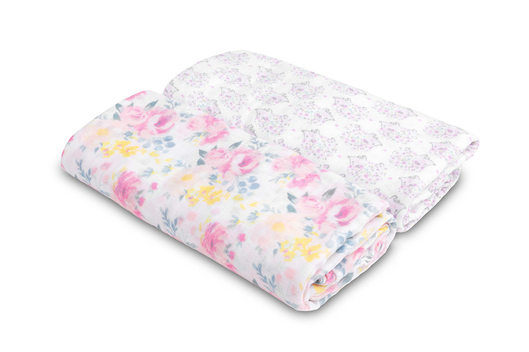 BAMBOO DIAPER 2-PACK FLOWERS+HEDGEHOGS 120X120