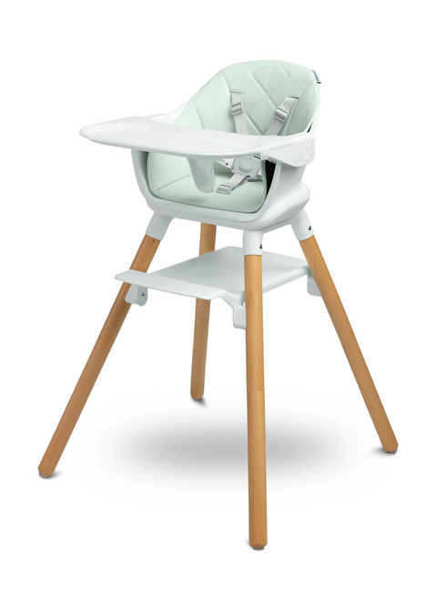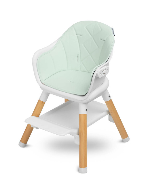 Bravo is a high chair that makes it easy for small children to sit together with adults. The elegant look and delicate colors will appeal not only to fans of Scandinavian design. Bravo can be used in many ways: with the function of a high chair, a low seat and a stool (high and low). It has two levels of footrest adjustment (16 cm and 24 cm) ensuring comfort for older children. During feeding, the profiled tray ensures that nothing will spill onto the floor, and the eco-leather upholstery and plastic seat facilitate quick and convenient cleaning. Stability is ensured by four legs made entirely of solid wood.