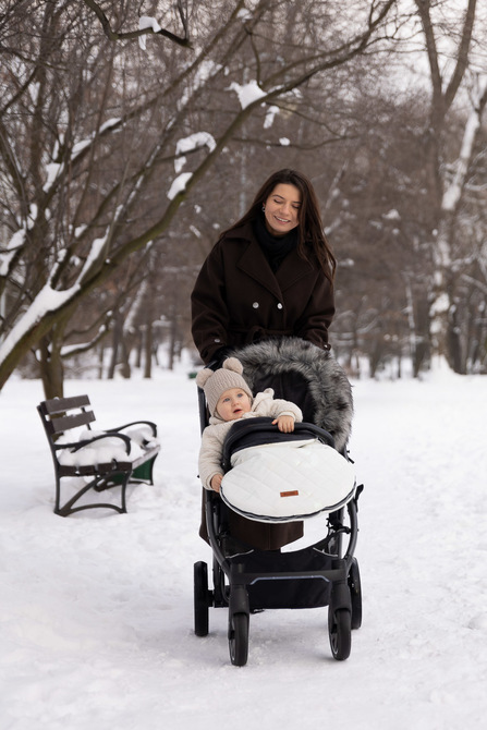 The outer layer of the Climber sleeping bag is a waterproof and windproof material that will work well in winter. It has an effective pattern of shimmering letters. The sleeping bag is filled with warm and pleasant to the touch fleece from the inside. The filling is a layer of polyester insulation that provides adequate insulation. The holes for the 5-point belts make it possible to securely fasten the child. Suitable for deep strollers, strollers and as a sleeping bag for sleds. It has a zipper that allows you to quickly unfasten or completely remove the top layer.