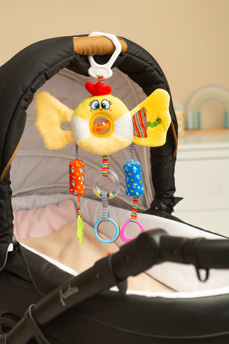 Thanks to the universal attachment, the toy can be easily mounted not only on a cot, but also on a stroller and car seat, providing the child with entertainment during travel or walks.