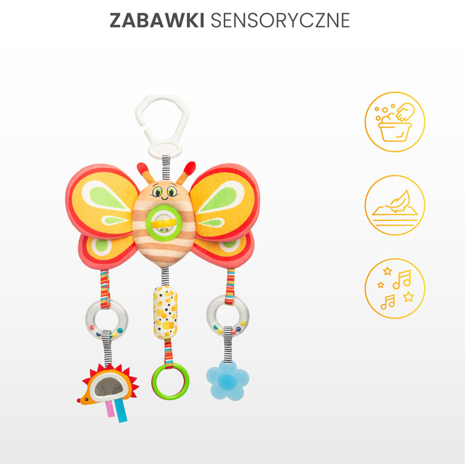 A travel toy with sensory toys is an excellent toy supporting the development of a baby. Safe materials and ergonomic design make it an ideal choice for children aged 0-18 months.