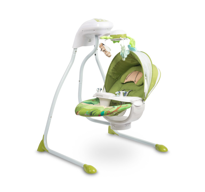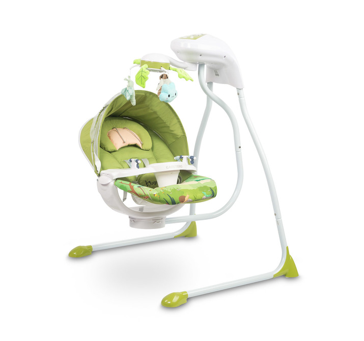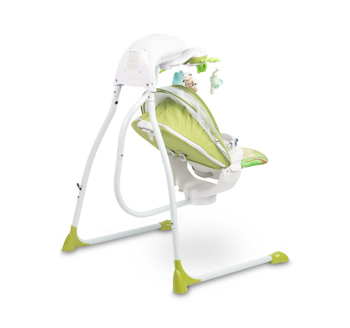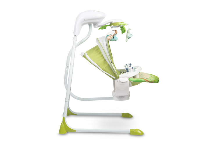 A rotating carousel with sea-themed toys and lights captures the child’s attention and supports the development of their motor skills. A detachable tray facilitates caring for the baby. The high-quality materials and wide range of functions make the Bugies swing an excellent choice for any infant.