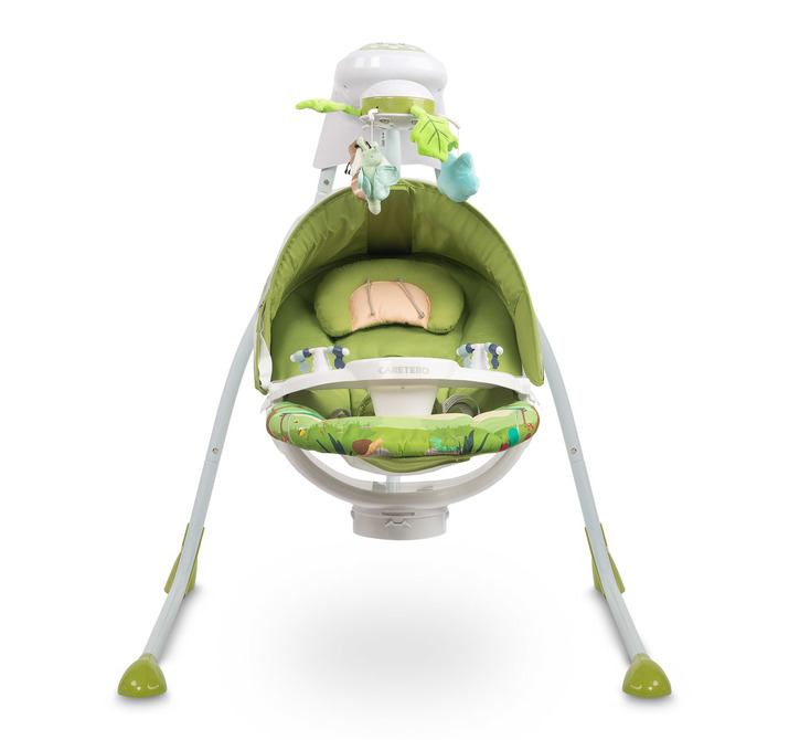 The two-level backrest inclination adjustment allows the child to be placed in a lying or semi-lying position. The swing ensures the correct posture for the child, and the materials used are gentle on their skin.