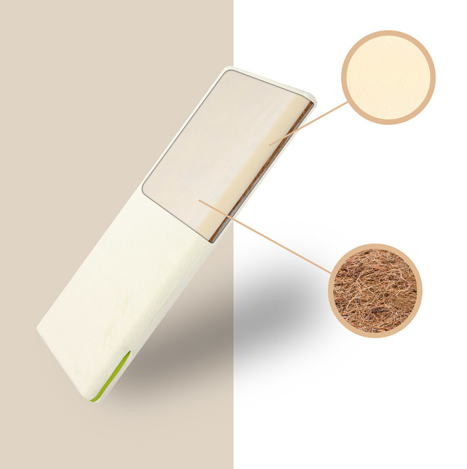 Coconut-Foam mattress is an ideal choice for parents who are looking for a comfortable and durable solution at an affordable price. With its layered construction (a layer of coconut mat combined with T21 foam) with a total thickness of 7 cm, it will provide a comfortable and restful sleep. The soft cover made of Aloe Vera fabric is extremely durable and has anti-allergenic and anti-bacterial properties, and if it gets dirty, it can be easily removed and washed.