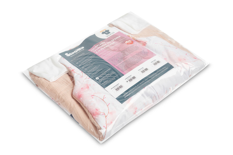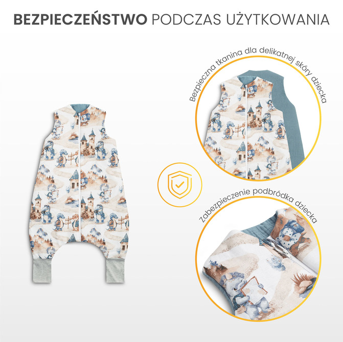 The sleeping bag is made of soft fabric that is friendly to the baby’s skin, ensuring optimal temperature and preventing the baby from overheating while sleeping. Additional stitching around the zipper at the neck protects the baby’s delicate skin during use.