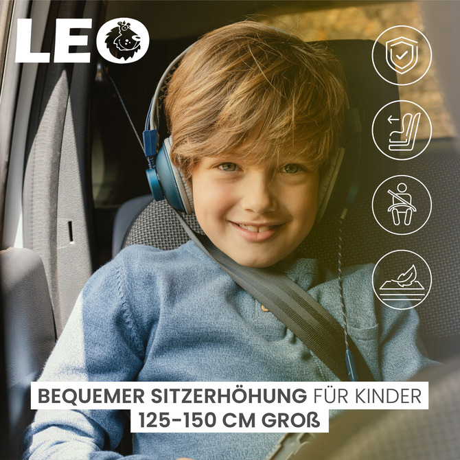 Leo is a booster type car seat, intended for the oldest children who no longer fit in the seat and have not yet reached 150 cm. Thanks to the use of the booster, the car seat belt will safely adhere to the child’s body. Leo can be installed in a car equipped with 3-point seat belts, without the ISOFIX system. The Leo booster is lightweight – it weighs only 1.7 kg – which increases its comfort of use.