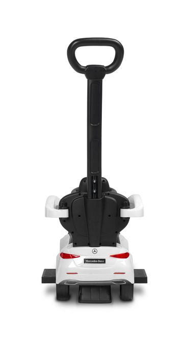The Mercedes ride-on is a stylish and safe toy for children aged 12 to 36 months. It can be used as a push-along – guided by a parent, or, after removing the handle and safety bar – as a classic ride-on for older children.