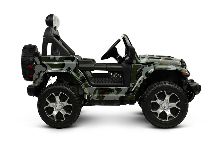 Jeep Rubicon is a battery vehicle, which is a licensed version of the well-known off-roader. The faithful reproduction of the Jeep’s appearance will delight both small drivers and parents. Driving comfort is ensured by rear axle shock absorption and a seat with eco-leather upholstery. Easier off-road driving will be ensured by 4 motors driving 30-centimeter wheels made of EVA foam. An additional advantage is the LED lights placed in the front and on the crossbar of the vehicle.