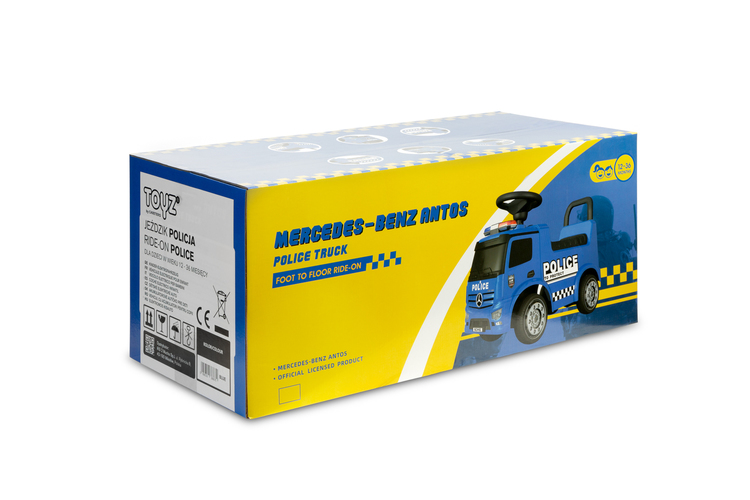 The Toyz Police vehicle is made under the license of the Mercedes brand. Intense colors, light and sound signals, as well as a steering wheel with a horn are the things that will make future policemen love the ride-on truck. The vehicle is made of high-quality plastic. There is a toy compartment under the comfortable seat. The ride-on car has protection against tipping over to the rear.