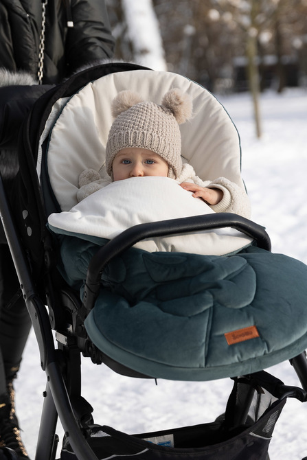The Riviera romper bag is elegant and comfortable. On the outside, it is trimmed with an elegant quilted fabric. Its high quality and plush character make it very pleasant to touch. The sleeping bag has an equally delicate velvet fabric on the inside. In addition, there is a layer of insulation between them, which ensures optimal comfort during cool walks. The sleeping bag can be used in deep strollers, strollers and as a sledge bag. The Riviera has holes for 5-point belts that allow you to securely attach your child and a sewn-in zipper that allows you to quickly unfasten or completely remove the top layer.